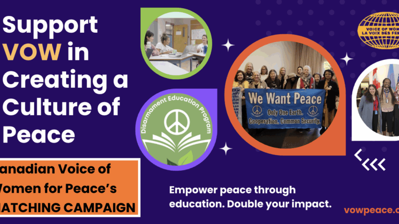 This season of giving is your chance to be part of a legacy. For 65 years, the Canadian Voice of Women for Peace (VOW) has been a critical organization dedicated to building cultures of peace through education, advocacy, and amplifying the voices of women. We’ve been, and continue to be, dedicated, passionate and committed in our advocacy for peace, disarmament, and non-violence, working to …